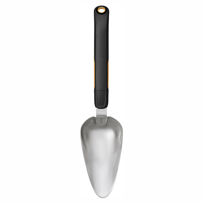 Совок удобно хранить в подвешенном состоянии. Для этого в рукоятке предусмотрено отверстие. Особый материал исключает скольжение рук и обеспечивает отличное сцепление с ладонью. Работа в саду и огороде станет приятнее с новым инструментом!